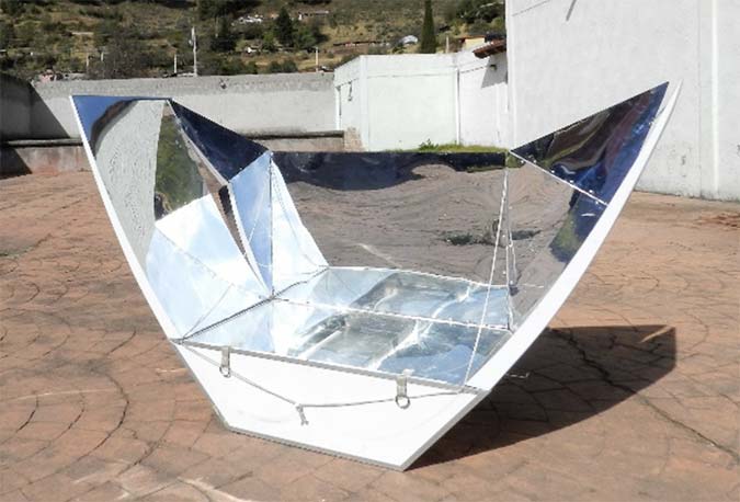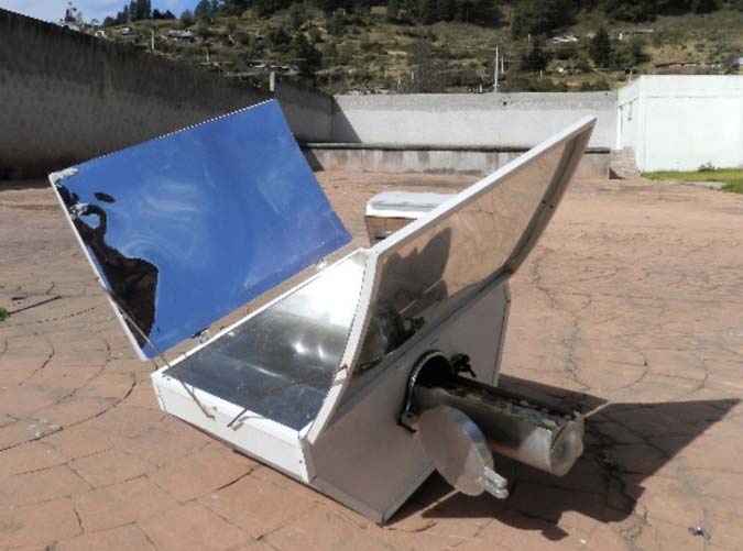 Con la intención de saber qué características tecnológicas, ergonómicas y estéticas precisan tener una estufa y un comal solar para ser útiles a mujeres rurales, hicimos un ejercicio de codiseño en San Francisco Oxtotilpan, Temascaltepec, Estado de México, última comunidad de la etnia matlatzinca, donde cocinan con leña y mantienen su gastronomía tradicional. Los prototipos base fueron la estufa y el comal solar Tolokatzin (Figuras 1 y 2), diseñados y construidos en el Estado de México, los cuales funcionan a través de espejos que concentran la radiación solar.14