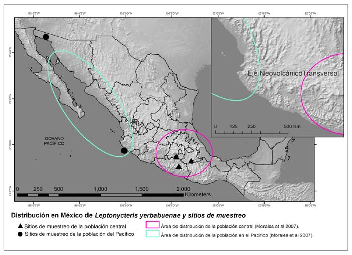 Figura 2. Distribución de Leptonycteris yerbabuenae en México